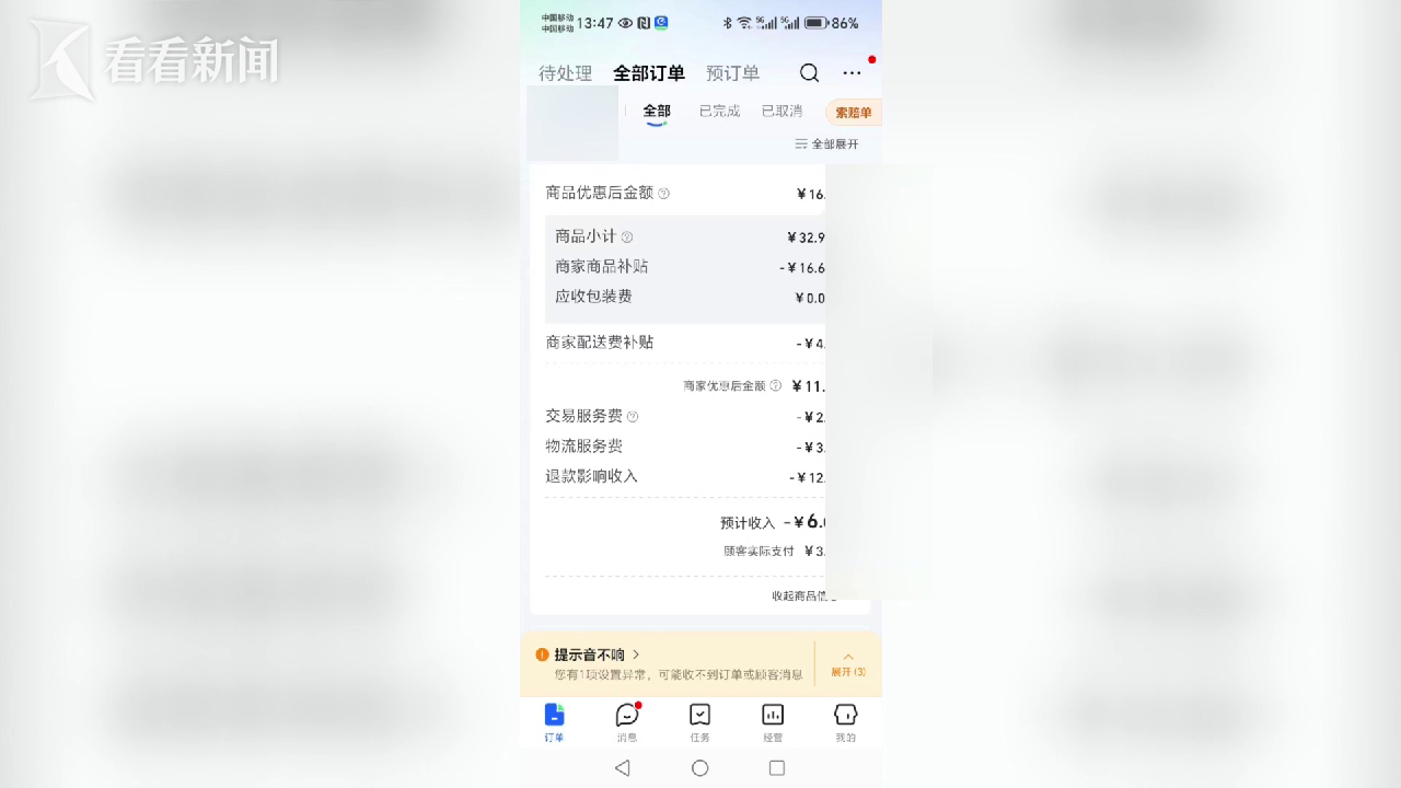今年以来,不少外卖平台大肆销售优惠券,引发外卖大战。不少平台商户向我们反映,消费者在满意的同时,像这样的小商户才是受伤最严重的。一些商家发现,对于某些订单,如果顾客退回全部订单,他们的利润就会为零,而如果只退回部分食物,商家的利润实际上会是负数,这让他们很不高兴。这是怎么回事 近日,我们接到一位普通贸易商的投诉。经营一家鲜切水果店的卢先生向我们反映,过去一年,他在饿了么平台下了很多订单。当客户选择部分取消订单时,他的收入实际上变成了负数,相当于退了客户钱后平台的付款。这着实令他惊讶。卢先生给我们看了其中一张订单:该订单经过商家折扣后的价值是11.8元名词商户支付交易服务费2.3元,物流服务费3元。通常情况下,你应该得到6.5元左右。不过,也有用户对部分水果发起退款。后来系统显示,这张订单需要退款12.5元,相当于陆先生的6元多。 “我今年在这个平台上的平均客单价只有四五块钱,部分退款还要花这么多钱,这不合理。”陆先生无法理解。陆先生表示,如果其他平台出现退款,收入最多就是0,而且负数是史无前例的。这种情况仅出现在ELE.ME平台上。更搞笑的是,在饿了么,如果用户发起订单全额退款,他的预估利润显示为0,但如果是部分商品退款,则变成负数。我也搜索了社交媒体,发现很多人都遇到过类似的情况。例如,这交易员发帖:饿了么平台预估利润18元的订单,如果部分退款,则需要退款21.7元,平台欠款3.7元。联系平台客服后,对方给出的解释是:商家要求的退款金额为:生产者原价+餐盒费-商家平分给产品的补贴金额。一些遇到类似情况的商家表示,他们更愿意全额退款,而不是部分退款。那么,为什么退款后还欠平台钱呢?不少贸易商认为,这可能与过去一年外卖平台疯狂“补贴推出”有关。长寿路这家咖啡店的负责人给我看了一份8月底的订单。当时该店参加了平台的促销活动。扣除相关补贴、平台佣金后物流费,这杯咖啡的实际购买价格为-0.29元。据该负责人介绍,由于每笔运费和佣金都有一个保证的最低价格,即使单价很低,也必须支付这笔钱。再加上要扣除的补贴,得到的价格不出所料的低。在这种情况下,如果再次发生拒付,运费和佣金将不予退还。交易者肯定会赔钱,负数也很常见。 “如果我们拒绝接受低单价订单,平台会认为我们不能接受订单并停止流量;如果我们接受,就没有利润,甚至亏损。”石元奇无奈。简单来说,这就是平台喊的“百亿补贴”,“百亿补贴”实际上覆盖了交易者很大一部分的钱。为了在流量耗尽后获得一些流量和微薄的利润,商家需要硬着头皮参与其中。n 平台补贴活动。为此,有的在销售时会先提高外卖平台商品的售价,甚至平台佣金、活动补贴、物流费用等成本。卢先生坦言:“比如价格是100元,平台会收取20多元,其中包括很多优惠券,所以我们只能根据实际想要收到的金额来调整价格。”业内专家表示,部分退款后,贸易商利润为负。平台可能会根据原订单价格计算商家的退款价格。同时也不排除系统在计算商户及平台补贴成本时存在问题,如未能合理返还商户补贴,或向平台收取过多补贴等。而这一切都成为了一个谜,因为该平台的算法是晦涩难懂的。翟庆华 华东师范大学全球研究院副教授创新发展分析道:“如果算法清晰透明,每一笔成本都花在哪里,哪怕偶尔有一点小损失,他们也不会接受交易者。专家坦言,为了争夺地盘,今年以来,国家市场监管部门多次约谈相关平台企业。但价格战的影响仍在持续,长期来看,更多小企业可能会选择降低质量、降低成本,甚至直接危害食品安全。”这种看似让用户受益,实则导致行业生态失衡的做法必须尽快停止。 翟庆华指出,平台通过支撑产品价格来吸引用户,产生了强大的动力,但也导致了产品价值与价格的偏差,他认为应该通过补贴来鼓励商家改善服务。创新产品,提高食品卫生质量,优化储存和生产环境。这样的做法有利于整个商业生态系统的繁荣和发展。消息播出前,饿了么平台给我们回复,解释了退款订单收入为负的问题:这可能是因为结算金额受到营销成本的影响。对于已发货的全额退款订单,已产生运费。然而,在某些情况下,平台将支持已经发生的物流和其他成本。如果只是部分退款,还需支付运费。但参与商家的配送补贴是不予退还的,因此可能会出现部分退款的情况,商家会多付一些钱。无论如何,异常的外卖价格战影响了行业的健康发展。只有从“价格数量”转变为“质量数量”、“服务数量”,才能实现e平台生态系统逐渐回归标准化和秩序。剪辑:张宇阳 视频剪辑:王岑峰 摄像:李佳琪 剪辑:余志清